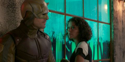 Lalu sampailah di episode-episode terakhir saat Jen dan Matt Murdock alias Daredevil jadi pasangan instan. Entah ini sesuai dengan karakter Daredevil di serial lainnya atau tidak, tapi meski dalam serial ini kita sudah diperlihatkan bahwa Jen bisa langsung tidur bareng dengan seorang cowok yang baru ditemuinya dalam sehari, mungkin tidak terlalu out of character bagi Jen. Tapi bagiku, proses bikin chemistry-nya terlalu cepat untuk romansa di antara 2 karakter penting.