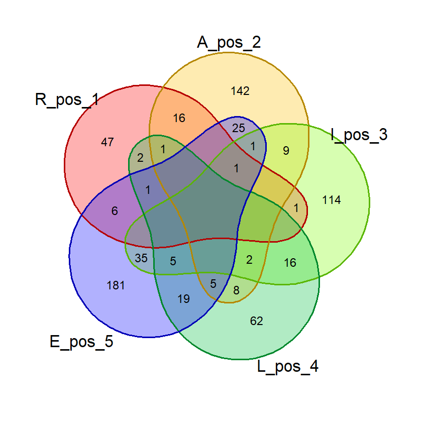(Catatan: “CRANE” sebenarnya muncul dua kali, karena muncul dari dua cara, namun filenya tertimpa karena namanya sama. Ini tidak masalah karena diagram venn-nya akan sama dan menampilkan keduanya dalam konteks ini tidak berpengaruh pada analisis.)